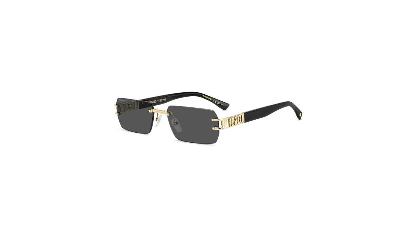 I Dsquared2 D2 0189/S - J5G Oro sono occhiali da sole da uomo con costruzione glasant e forma rettangolare, realizzati in metallo con doppio finish oro e palladio. Un modello iconico e best-seller, caratterizzato dal logo traforato DSQ2 sulle aste, dettaglio distintivo e di forte impatto visivo.